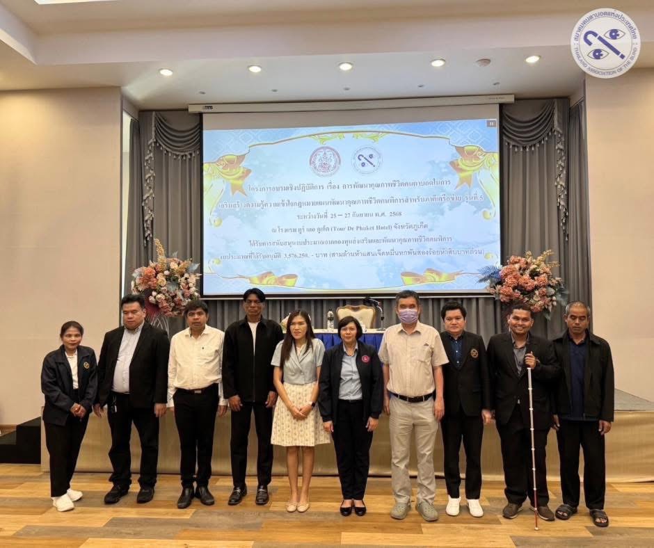 ระหว่างวันที่ 25 – 27 กันยายน 2568 นายเอกกมล แพทยานันท์ นายกสมาคมคนตาบอดแห่งประเทศไทย ลงพื้นที่จังหวัดภูเก็ต เพื่อร่วมเป็นวิทยากร ในโครงการอบรมเชิงปฏิบัติการ เรื่อง การพัฒนาคุณภาพชีวิตคนตาบอด ในการเสริมสร้างความรู้ความเข้าใจกฎหมายแผนพัฒนาคุณภาพชีวิตคนพิการสำหรับภาคีเครือข่าย รุ่นที่ 5 ณ โรงแรมตูร์ เดอ ภูเก็ต (Tour De Phuket Hotel)