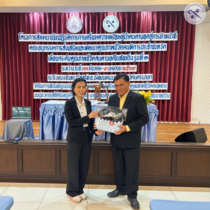 สมาคมคนตาบอดแห่งประเทศไทย จัดโครงการสัมมนาเชิงปฏิบัติการ เรื่อง “การเตรียมความพร้อมผู้นำคนตาบอดสู่การทำหน้าที่คณะอนุกรรมการส่งเสริมและพัฒนาคุณภาพชีวิตคนพิการประจำจังหวัด” รุ่นที่ 1 ระหว่างวันที่ 31 มีนาคม – 3 เมษายน 2569 ณ โรงแรมจันทรา รีสอร์ท จังหวัดนครนายก โดยมีกลุ่มเป้าหมายเป็นผู้นำคนตาบอดจากสมาคมคนตาบอดสาขากรุงเทพมหานคร และสาขาภาคตะวันออก เข้าร่วม