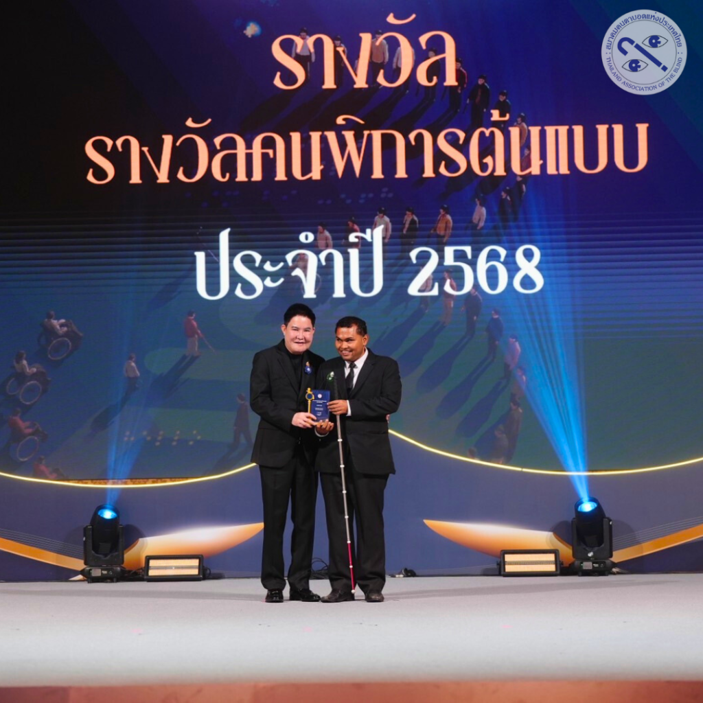 สมาคมคนตาบอดแห่งประเทศไทยขอแสดงความยินดีกับ นายสุนทร สุขชา กรรมการบริหารสมาคมฯ ที่ได้รับรางวัล “คนพิการต้นแบบ ประจำปี 2568” ซึ่ง นายสุนทร สุขชา เป็นหนึ่งในผู้นำการขับเคลื่อนกฎหมายและนโยบายด้านสิทธิคนพิการ ผลักดันประเด็นสำคัญต่าง ๆ ให้เกิดการเปลี่ยนแปลงที่เป็นรูปธรรม และเป็นพลังสำคัญที่ช่วยยกระดับคุณภาพชีวิตของคนพิการในสังคมไทย