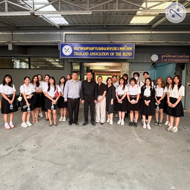 เมื่อวันที่ 5 กุมภาพันธ์ 2569 นายเอกพงษ์ นบสกุล กรรมการและประชาสัมพันธ์สมาคมคนตาบอดแห่งประเทศไทย และนายเทวพงษ์ พวงเพชร กรรมการและเหรัญญิกสมาคมฯ ให้การต้อนรับคณะอาจารย์และนักศึกษาจากคณะวารสารศาสตร์และสื่อสารมวลชน มหาวิทยาลัยธรรมศาสตร์ ณ สมาคมคนตาบอดแห่งประเทศไทย นำโดยรองศาสตราจารย์ ดร.อารดา ครุจิต และรองศาสตราจารย์ ดร.กุลนารี เสือโรจน์ อาจารย์ประจำรายวิชา วส.433 สื่อกับคนพิการ ภายใต้โครงการผลิตสื่อเพื่อสังคม กลุ่มวิชาวิทยุ โทรทัศน์ และสื่อดิจิทัล โดยมีนักศึกษาเข้าร่วมเพื่อเรียนรู้การผลิตสื่อและการให้บริการเพื่อการเข้าถึงของคนตาบอด ประกอบด้วย แนวทางการผลิตเสียงบรรยายภาพ การผลิตหนังสือเสียงระบบเดซี่ รวมถึงการให้บริการข้อมูลข่าวสารและความรู้ผ่านสายด่วน 1414 ซึ่งเป็นระบบโทรศัพท์อัตโนมัติสำหรับคนตาบอด