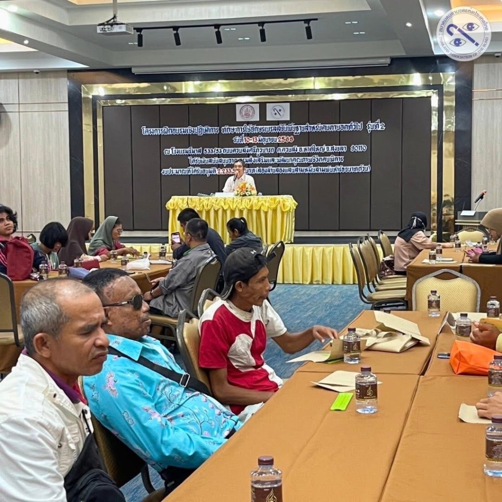 วันศุกร์ที่ 13 มิถุนายน 2568 นายเอกกมล แพทยานันท์ นายกสมาคมคนตาบอดแห่งประเทศไทย ได้รับเกียรติเป็นวิทยากรบรรยายในหัวข้อ “หลักการอ่านและเขียนรหัสอักษรเบรลล์คณิตศาสตร์ หมวดตัวเลข และสัญลักษณ์ที่ใช้บ่อย” ในโครงการฝึกอบรมเชิงปฏิบัติการ “ทักษะการใช้อักษรเบรลล์ขั้นพื้นฐานสำหรับคนตาบอดทั่วไป” รุ่นที่ 2 ซึ่งจัดขึ้นสำหรับพี่น้องคนตาบอดในพื้นที่ภาคใต้ ณ โรงแรมรีมาส อำเภอหาดใหญ่ จังหวัดสงขลา จัดโดยคณะกรรมการกองทุนส่งเสริมและพัฒนาการใช้อักษรเบรลล์แห่งชาติ