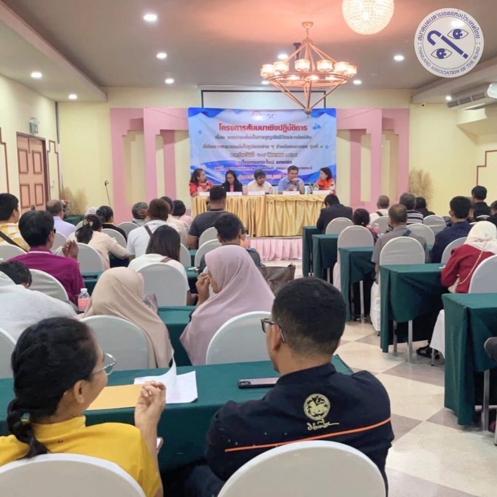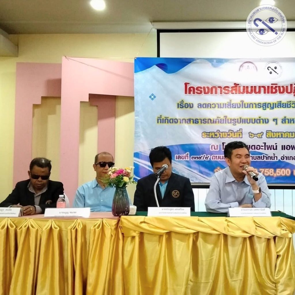 วันที่ 6-7 สิงหาคม 2568 นายเอกกมล แพทยานันท์ นายกสมาคมคนตาบอดแห่งประเทศไทย เดินทางลงพื้นที่จังหวัดกระบี่เพื่อร่วมเป็นวิทยากรในโครงการสัมมนาเชิงปฏิบัติการเรื่อง “ลดความเสี่ยงในการสูญเสียชีวิตและทรัพย์สินที่เกิดจากสาธารณภัยในรูปแบบต่าง ๆ สำหรับคนตาบอด” รุ่นที่ 4 ซึ่งจัดขึ้นระหว่างวันที่ 6-9 สิงหาคม 2568 ณ โรงแรมเดอะไพน์ แอพเพิล อำเภอเมือง จังหวัดกระบี่
