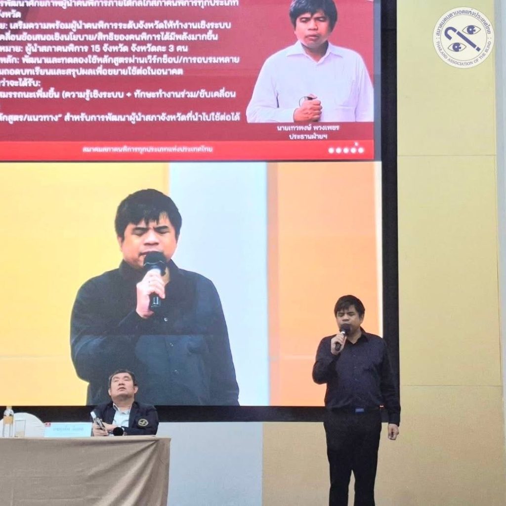 สมาคมคนตาบอดแห่งประเทศไทยพร้อมร่วมทำงานภายใต้สมาคมสภาคนพิการทุกประเภทแห่งประเทศไทยและเครือข่ายองค์กรคนพิการอย่างต่อเนื่อง เพื่อผลักดันข้อเสนอจากเวทีการประชุมไปสู่การปฏิบัติจริง และร่วมกันสร้างการเปลี่ยนแปลงที่เป็นประโยชน์ต่อคนพิการในทุกมิติ