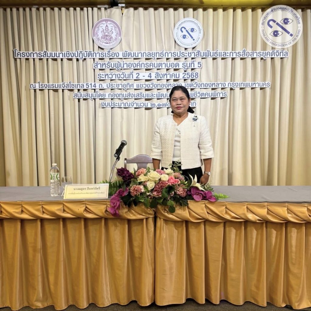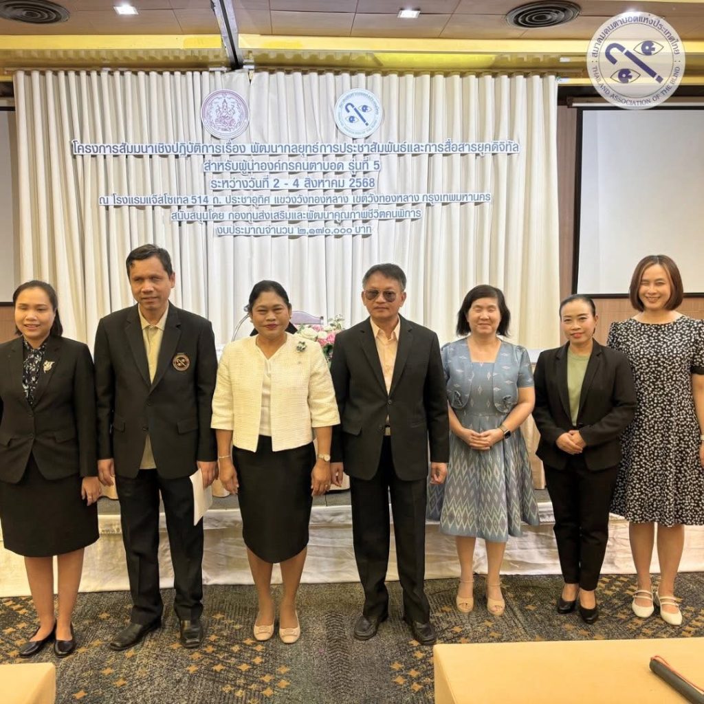 สมาคมคนตาบอดแห่งประเทศไทย จัดโครงการพัฒนากลยุทธการประชาสัมพันธ์และการสื่อสารยุคดิจิทัลสำหรับผู้นำองค์กรคนตาบอด รุ่นที่ 5 ระหว่างวันที่ 2-4 สิงหาคม 2568 ณ โรงแรม แจ๊สโซเทล กรุงเทพมหานคร เพื่อพัฒนาความรู้และทักษะด้านการประชาสัมพันธ์และการใช้เทคโนโลยี ให้การประชาสัมพันธ์มีประสิทธิภาพ เพิ่มศักยภาพในการทำงานและการสื่อสารประชาสัมพันธ์ในยุคปัจจุบัน