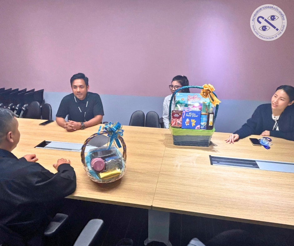 ในโอกาสนี้ สมาคมคนตาบอดแห่งประเทศไทยได้นำ “กระเช้าแทนใจ” ซึ่งเป็นผลิตภัณฑ์ฝีมือคนตาบอดจากทั่วประเทศ มอบเป็นของขวัญเนื่องในเทศกาลปีใหม่ พร้อมบัตรอวยพรและบทกลอนอวยพรจากนักเขียนตาบอด ในนามปากกา “รินศรัทธา กาญจนวตี” เพื่อถ่ายทอดความปรารถนาดี กำลังใจ และความหวังในการก้าวสู่ปีใหม่ร่วมกัน