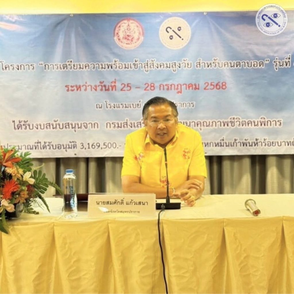 สมาคมคนตาบอดแห่งประเทศไทย จัดโครงการ “การเตรียมความพร้อมเข้าสู่สังคมสูงวัย สำหรับคนตาบอด” รุ่นที่ 4 ระหว่างวันที่ 25 – 28 กรกฎาคม 2568 ณ โรงแรมเบย์ จ.สมุทรปราการ