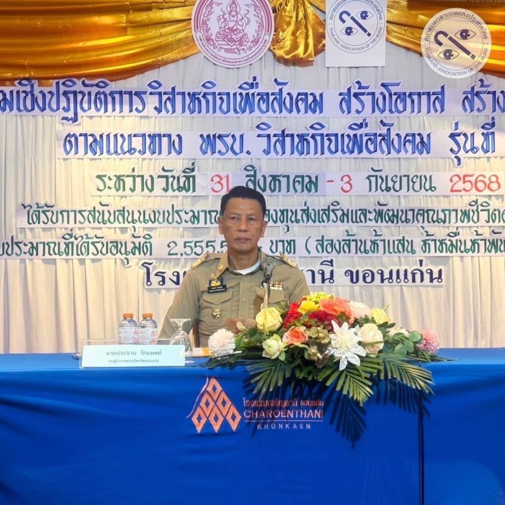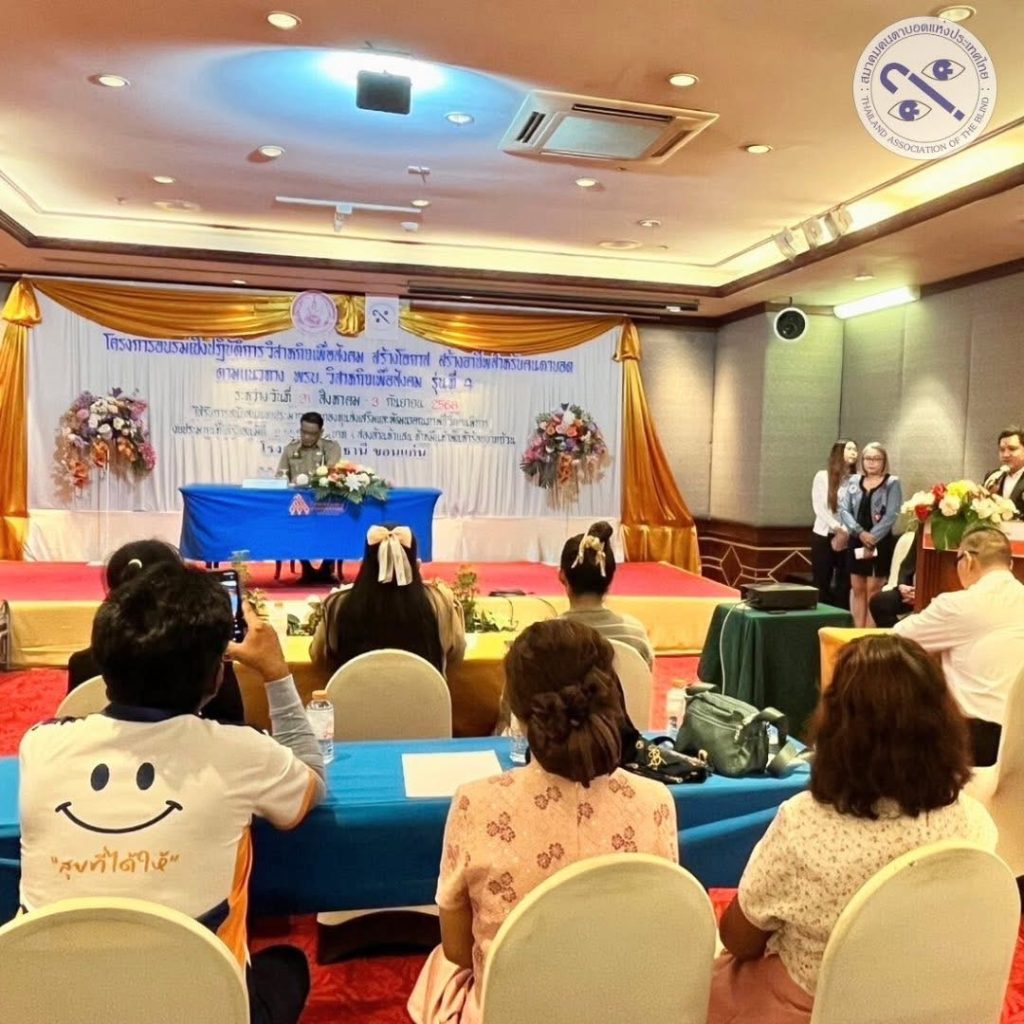 สมาคมคนตาบอดแห่งประเทศไทย จัดโครงการอบรมเชิงปฏิบัติการ “วิสาหกิจเพื่อสังคม สร้างโอกาส สร้างอาชีพสำหรับคนตาบอด” รุ่นที่ 4 ระหว่างวันที่ 31 สิงหาคม – 3 กันยายน 2568 ณ โรงแรมเจริญธานี จ.ขอนแก่น เพื่อส่งเสริมให้คนตาบอดได้มีการพัฒนาศักยภาพในด้านการดำเนินงานในเชิงวิสาหกิจชุมชน ทั้งด้านการวางแผนการจัดตั้ง การบริหารจัดการวิสาหกิจเพื่อสังคม การสร้างธุรกิจที่ยั่งยืน มีกำไร และสามารถดำเนินธุรกิจได้อย่างต่อเนื่อง โดยคำนึงถึงหลักการของวิสาหกิจเพื่อสังคม