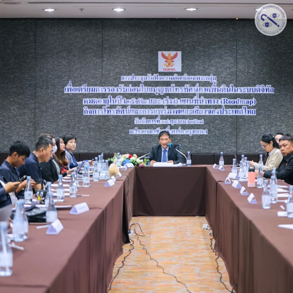 เมื่อวันที่ 14 ตุลาคม 2568 นายเอกกมล แพทยานันท์ นายกสมาคมคนตาบอดแห่งประเทศไทย พร้อมด้วยนายเอกพงษ์ นบสกุล กรรมการและประชาสัมพันธ์สมาคมฯ และนายไปรเวท สทานสัตย์ อนุกรรมการประชาสัมพันธ์และสื่อสารองค์กรสมาคม ฯ เข้าร่วมประชุมรับฟังความคิดเห็นเฉพาะกลุ่ม ซึ่งจัดโดยสำนักงานคณะกรรมการกิจการกระจายเสียง กิจการโทรทัศน์ และกิจการโทรคมนาคมแห่งชาติ หรือ กสทช. เพื่อเตรียมความพร้อมก่อนใบอนุญาตโทรทัศน์ภาคพื้นดินในระบบดิจิทัลจะหมดอายุในปี 2572 และเพื่อพิจารณาร่างแผนที่นำทางกิจการโทรทัศน์และการกระจายเสียงของประเทศไทย