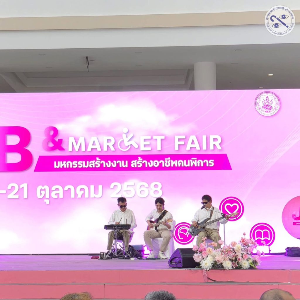 วันที่ 20 ตุลาคม 2568 นายเอกกมล แพทยานันท์ นายกสมาคมคนตาบอดแห่งประเทศไทย พร้อมด้วยนายเอกพงษ์ นบสกุล กรรมการและประชาสัมพันธ์สมาคมฯ เข้าร่วมงาน “Job & Market Fair: มหกรรมสร้างงาน สร้างอาชีพคนพิการ” ณ อาคารรัฐประศาสนภักดี (อาคาร B) ศูนย์ราชการเฉลิมพระเกียรติ 80 พรรษา ถนนแจ้งวัฒนะ กรุงเทพฯ ซึ่งจัดโดยกรมส่งเสริมและพัฒนาคุณภาพชีวิตคนพิการ (พก.) กระทรวงการพัฒนาสังคมและความมั่นคงของมนุษย์