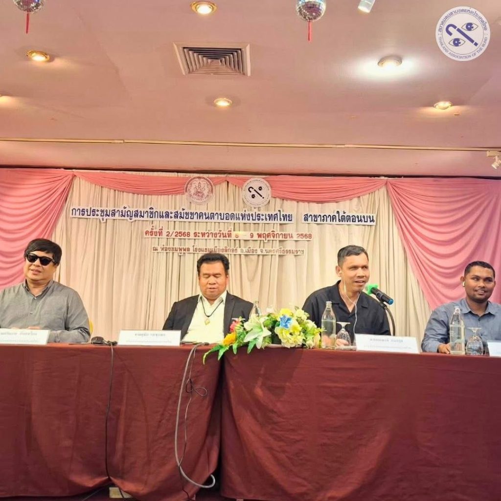 สมาคมคนตาบอดแห่งประเทศไทย สาขาภาคใต้ตอนบน ได้จัดการประชุมสามัญสมาชิกประจำปี 2568 และ สมัชชาสมาคมฯ สาขาภาคภาคใต้ตอนบ ณ โรงแรมเมืองลิกอร์ จังหวัดนครศรีธรรมราช