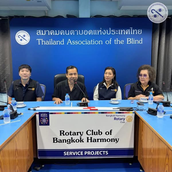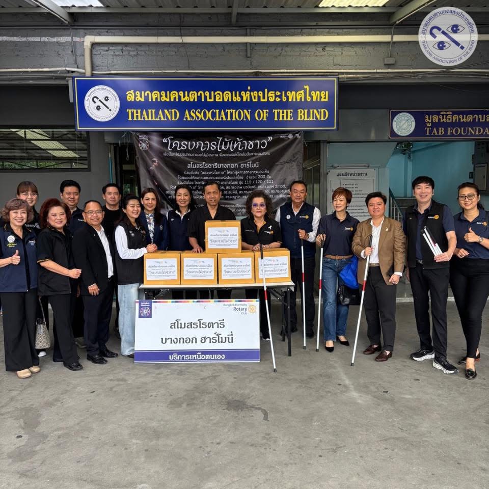 นายเอกพงษ์ นบสกุล กรรมการและประชาสัมพันธ์สมาคมคนตาบอดแห่งประเทศไทย เป็นตัวแทนสมาคมรับมอบไม้เท้าขาวจำนวน 200 อัน จากสโมสรโรตารีบางกอกฮาร์โมนี ภายใต้โครงการ “มอบไม้เท้าขาวแก่คนตาบอด ประจำปี 2568” โดยมี นางจิณดา เตชะวณิช แชง ประธานโครงการ กล่าวถึงที่มาและวัตถุประสงค์ของการดำเนินโครงการ