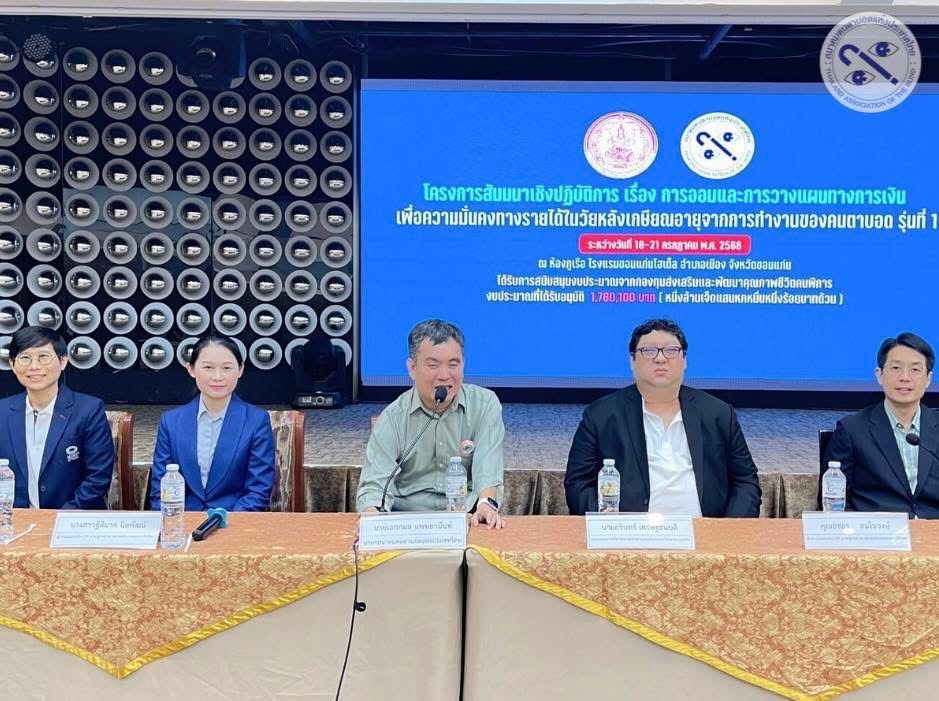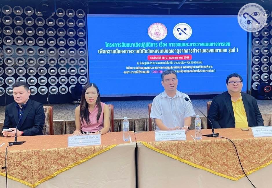 สมาคมคนตาบอดแห่งประเทศไทยจัดโครงการสัมมนาเชิงปฏิบัติการ เรื่อง “การออมและการวางแผนทางการเงินเพื่อความมั่นคงทางรายได้ในวัยหลังเกษียณอายุจากการทำงานของคนตาบอด” รุ่นที่ 1 ระหว่างวันที่ 18 – 21 กรกฎาคม 2568 ณ โรงแรมขอนแก่นโฮเต็ล จังหวัดขอนแก่น