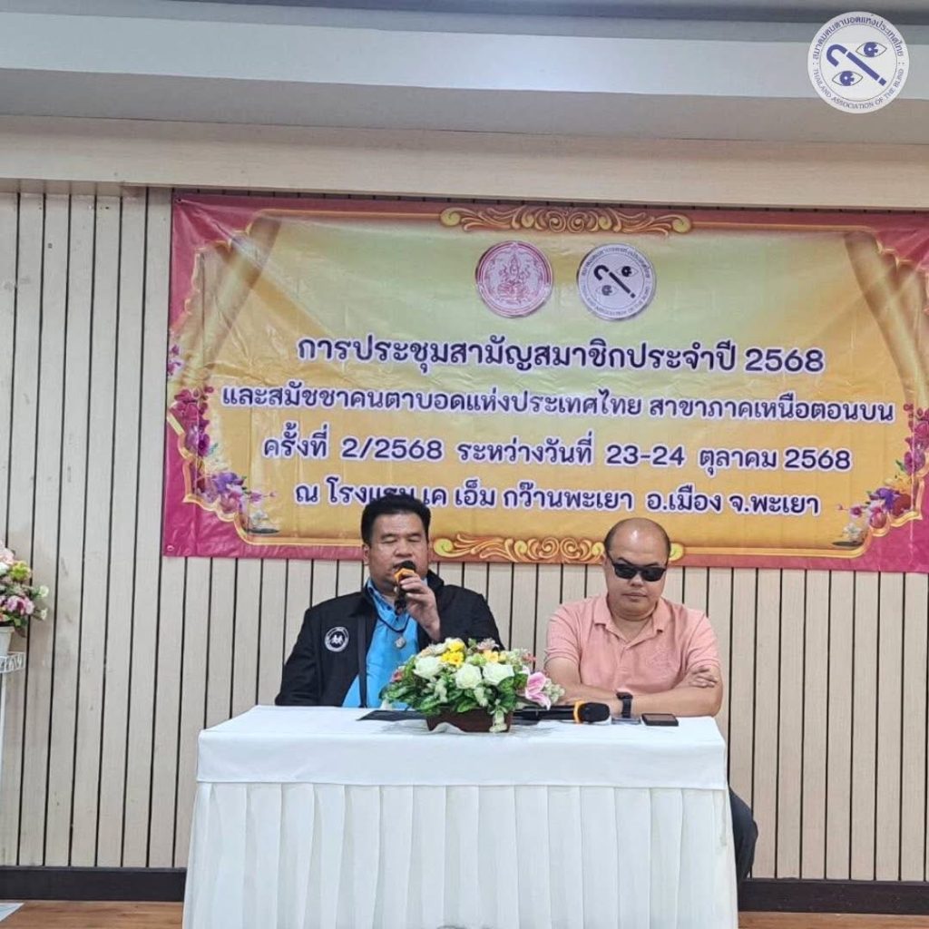 ระหว่างวันที่ 23-24 ตุลาคม 2568สมาคมคนตาบอดแห่งประเทศไทย สาขาภาคเหนือตอนบน ได้จัดการประชุมสามัญสมาชิกประจำปี 2568 และ สมัชชาสมาคมฯ สาขาภาคเหนือตอนบนณ โรงแรม เค เอ็ม กว๊านพะเยา อ.เมือง จ.พะเยา ภายในงาน นายสุบิน แบขุนทด อุปนายกสมาคมคนตาบอดแห่งประเทศไทย และนายภารากร คำเดช อุปนายกสมาคมคนตาบอดแห่งประเทศไทย ได้ร่วมเสวนาในหัวข้อ“รวมพลังสมาคมคนตาบอดแห่งประเทศไทยและเครือข่าย ออกแบบการพัฒนาคุณภาพชีวิตคนตาบอดอย่างยั่งยืนระยะ 5 ปี”ซึ่งเป็นการชี้ทิศทางการทำงานของสมาคมในระดับประเทศ และสร้างแรงบันดาลใจให้กับคนตาบอด เช้าวันที่ 23 ตุลาคม 2568ได้มีการจัดกิจกรรม เดินรณรงค์ “วันไม้เท้าขาวสากล ประจำปี 2568”โดยได้รับเกียรติจาก นายภูธนะ ชมภูมิ่ง รองผู้ว่าราชการจังหวัดพะเยา รักษาราชการแทนผู้ว่าราชการจังหวัดพะเยา เป็นประธานในพิธีเปิดกิจกรรม พร้อมอ่านสารจากนายกรัฐมนตรี เนื่องในวันไม้เท้าขาวสากล เพื่อสื่อถึงเจตนารมณ์ของรัฐบาลในการส่งเสริมสิทธิและศักดิ์ศรีของคนตาบอดในสังคม ขบวนรณรงค์เริ่มต้นจากบริเวณ่ลานพ่อขุนงำเมือง สิ้นสุดที่ โรงแรมเเอ็ม กว๊านพะเยา ท่ามกลางบรรยากาศแห่งพลังใจและความร่วมมือจากทุกภาคส่วน เพราะ “ไม้เท้าขาว” ไม่ได้เป็นเพียงเครื่องมือในการนำทาง แต่เป็น สัญลักษณ์แห่งอิสรภาพ ความเท่าเทียม […]